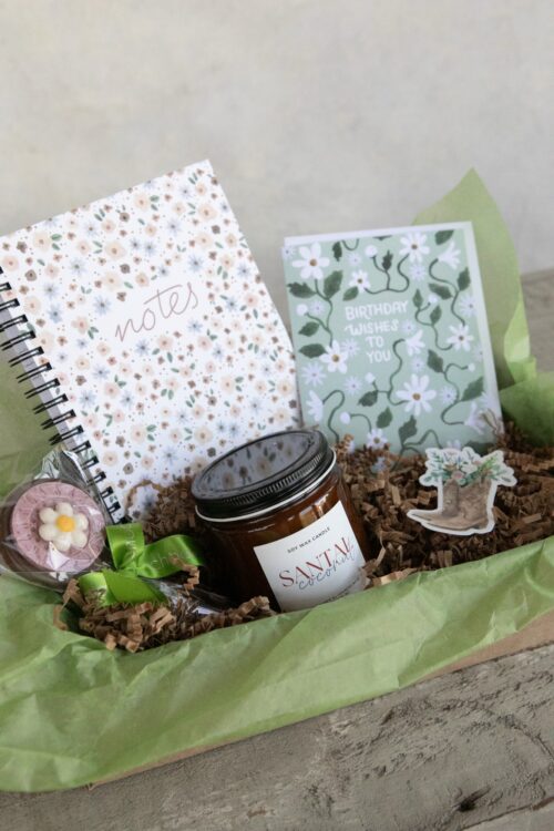 A beautifully curated collection of locally made gifts that is sure to bring joy! Chosen with love by our florists to suit the occasion! The Love Local Box includes: 💗A hand poured Country Rose Soy Candle 💗 A chocolaTas Milk Chocolate Flower Lolly 💗A Poppy & Lace Notebook + Sticker + Art Card to include a handwritten note to the lucky recipient! Choose to add a sweet bud vase of locally grown flowers for that extra special touch! *If you have a preference for the scent of the candle or a specific theme you would like to keep, please let us know in the Note to Florist Section at Checkout!