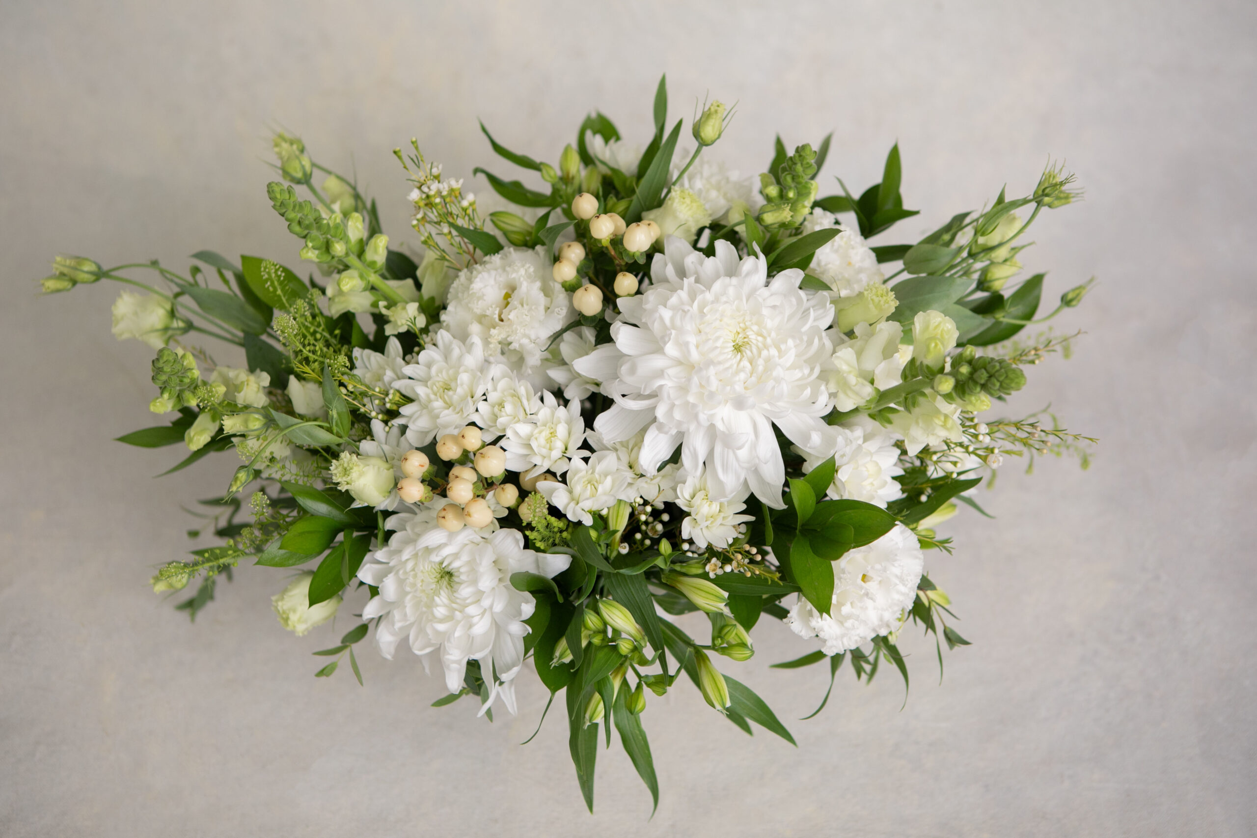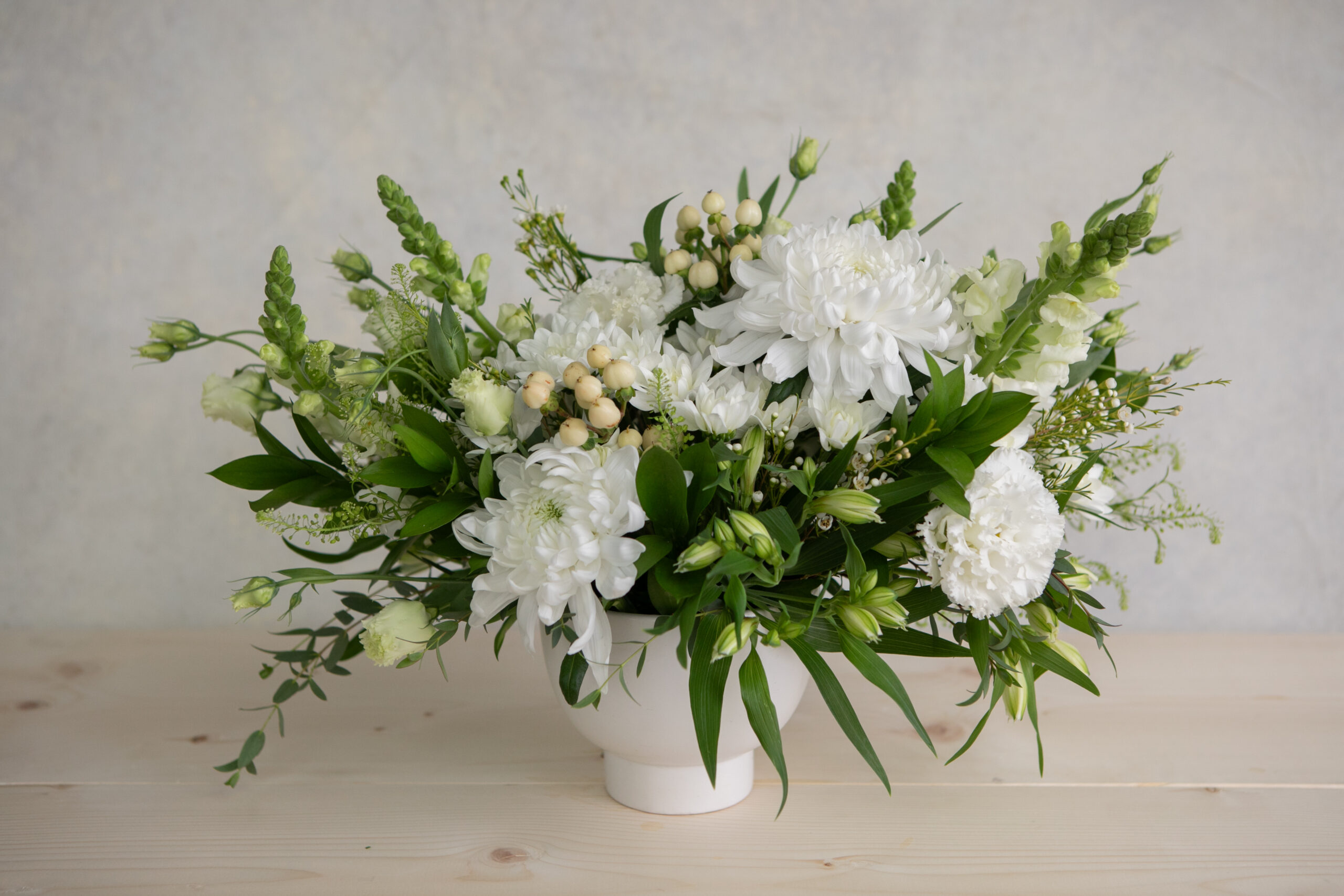 A classic mix of beautiful fresh flowers in a sympathy appropriate colour scheme. A sweet way to send your love during a difficult time.