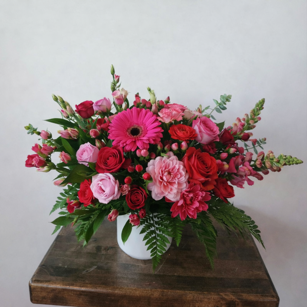 A beautiful trendy table arrangement that is perfect for on the Valentine’s table! This arrangement comes in the Floral Designer’s choice of colours that will be suitable for Valentine’s Day!