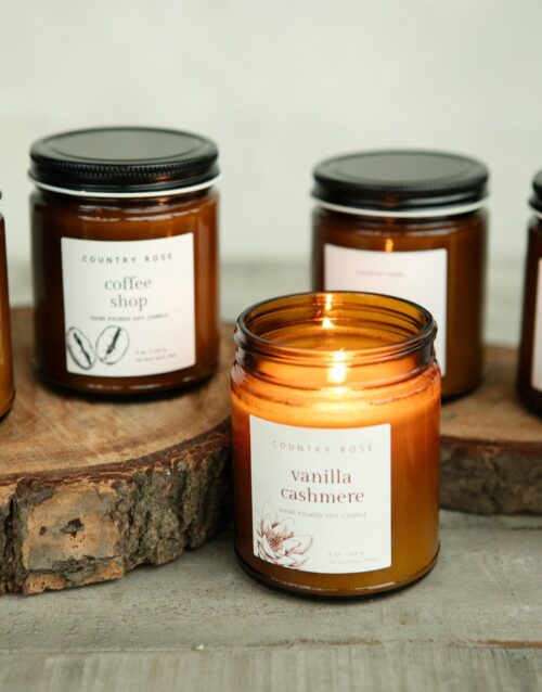 • Hand poured in Chilliwack, B.C. by local Artisan, Country Rose. These 8 ounce candles are hand poured using a blend of soy and coconut wax using high-quality fragrance oil for maximum scent. Approximate burn time is 48 hours.
